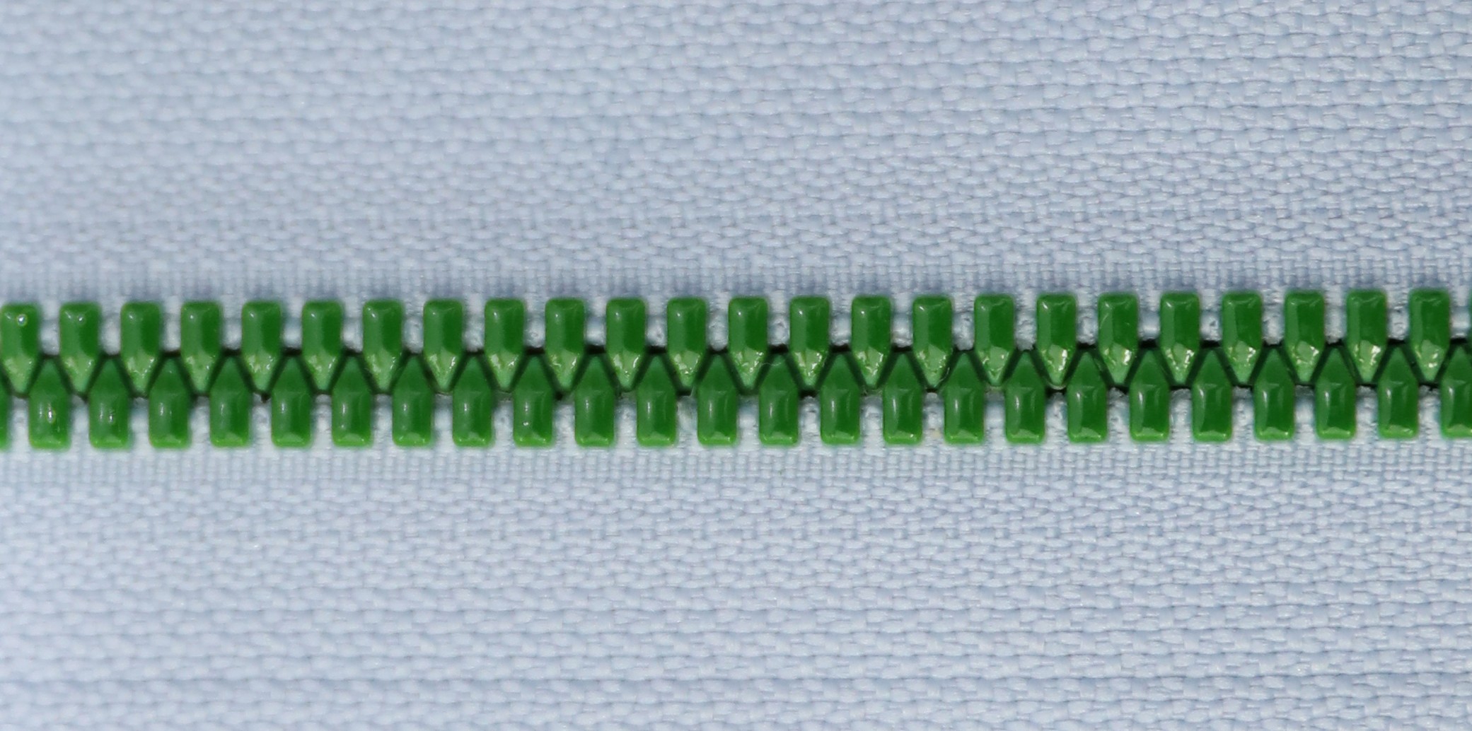 樹(shù)脂拉鏈采用塑料注塑成型的方式生產(chǎn),選用的材料為聚甲醛(POM),在拉鏈的鏈牙表面增加不同的顏色形成,相比于普通拉鏈更富有炫彩效果。